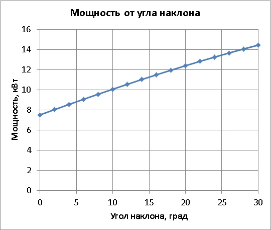 Для того чтобы понять, как мощность зависит от скорости и угла наклона дороги, произведём вычисления в Excel-е и создадим графики (*):
